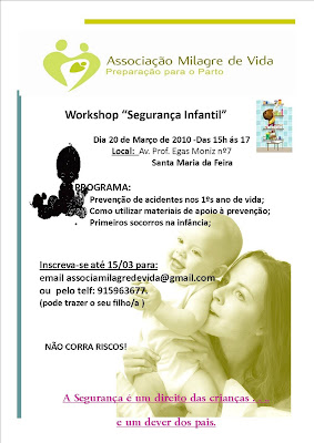 A Associação MVPP vai realizar um Workshop: "Segurança Infantil" no dia 20 de Março de 2010 -das 15h às 17Local: Av. Prof. Egas Moniz nº7